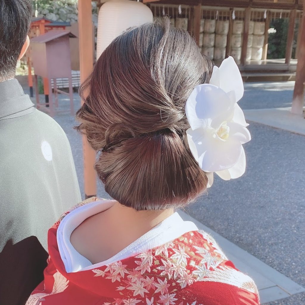ウィッグを付けてシニヨンアレンジ。