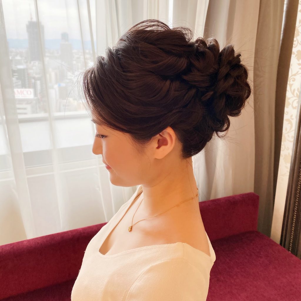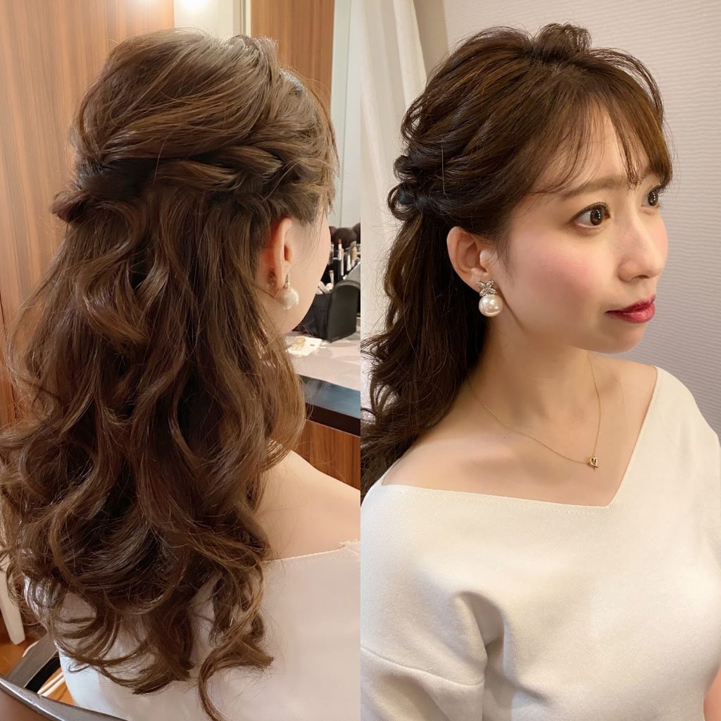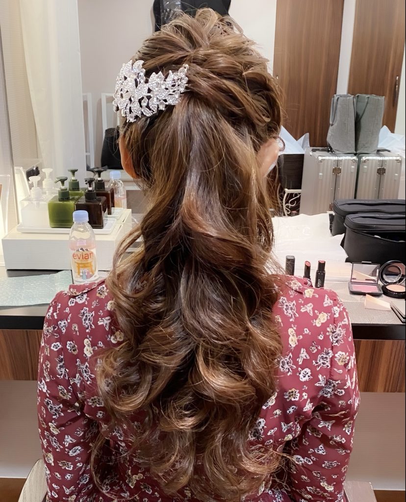 ホテルニューオータニ東京で結婚式を担当させていただくyukiさんのヘアメイクリハーサルがありました! ヘアスタイルはつるっとシニヨンから、ハーフアップにチェンジす... -